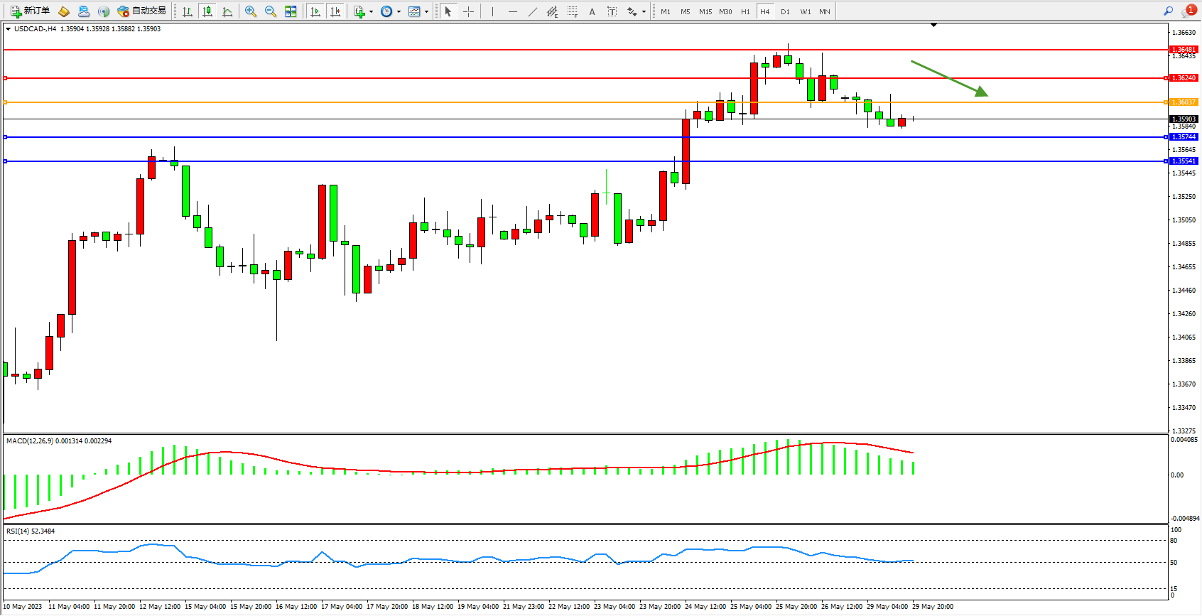 交易策略:1.36037下方看跌,目标1.36240 1.36481