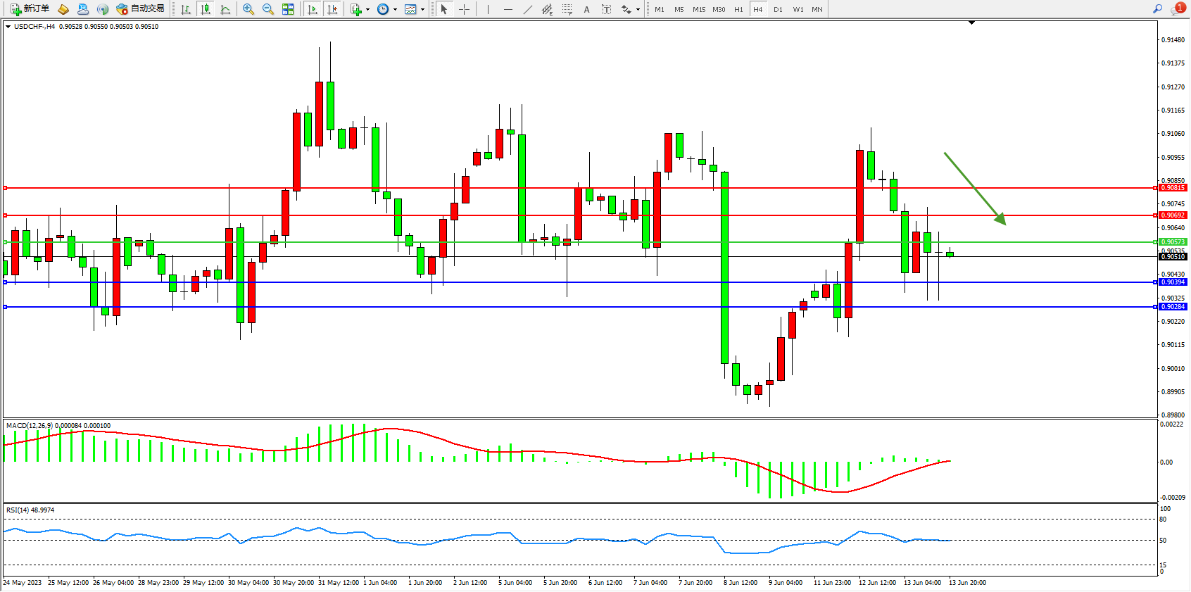 USDCHF:震荡下移 USDCHF  XAUUSD