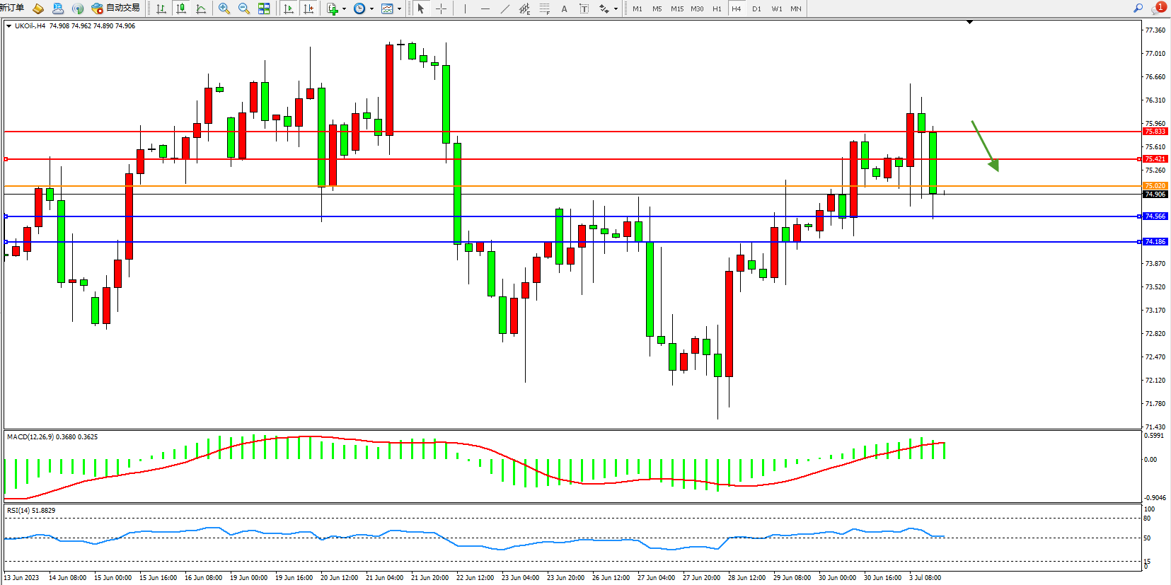 布油维持74.906附近震荡,美国页岩油田的石油和天然气钻探正在放缓,这将导致供应萎缩。当钻探活动收紧时,预计供应也会收紧是合理的,进而对价格产生积极影响。