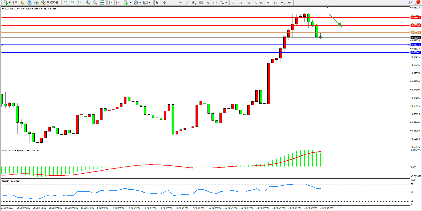 交易策略:0.68503下方看跌,目标0.68218  0.68042