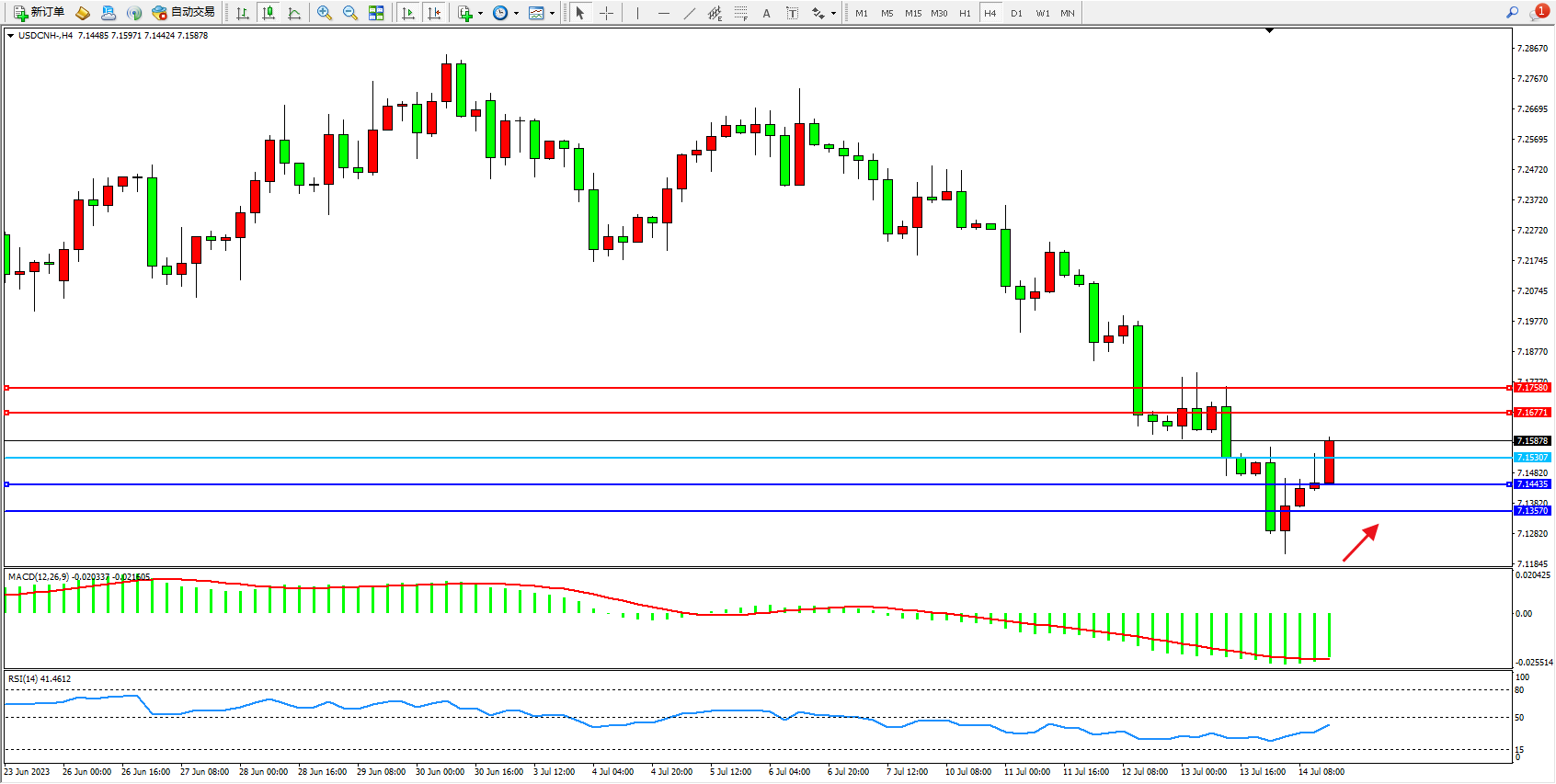 交易策略:7.15307上方看涨,目标7.16771  7.17580