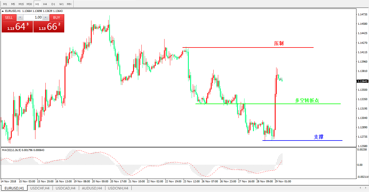 欧元兑美元EURUSD1小时图: