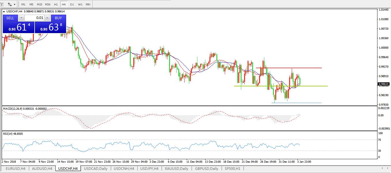 交易策略:0.9850上,看涨,目标价位 0.9905 ,然后为 0.9954