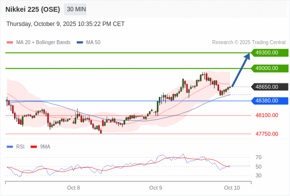 日经225股指期货 (OSE) 当日内: 超短线(当日内)支撑位在48380.00附近。