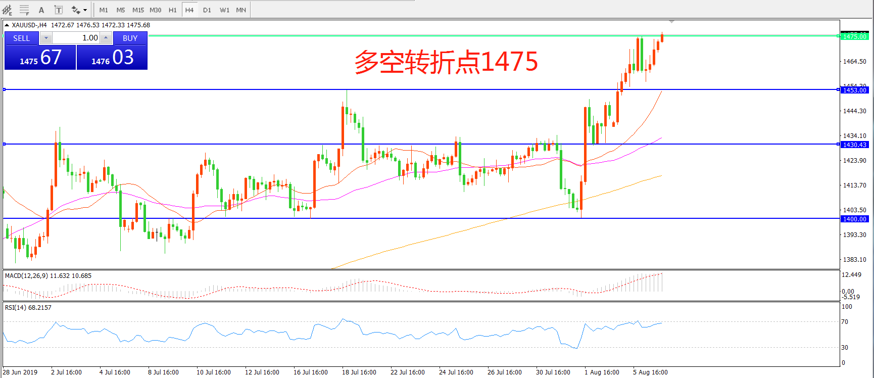 中美贸易紧张局势和美联储降息预期继续支撑金价维持强劲势头,现货黄金昨日维持高位震荡的走势,在近六年多来的最高水平整固后继续维持上攻势头,最终收报1473.5美元/盎司。只要关于贸易问题和英国脱欧的不确定性继续,避险情绪就很难消退,黄金多头就仍然具备持有理由。