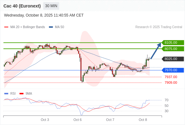 在 7970.00 之上,看涨,目标价位为 8075.00 ,然后为 8105.00 。