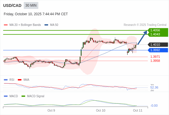 美元/加元 当日内 : 看涨。