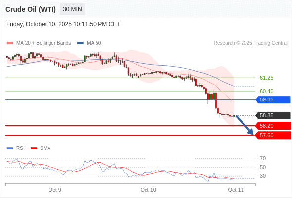 在 59.85 之下,看跌,目标价位为 58.20 ,然后为 57.60 。