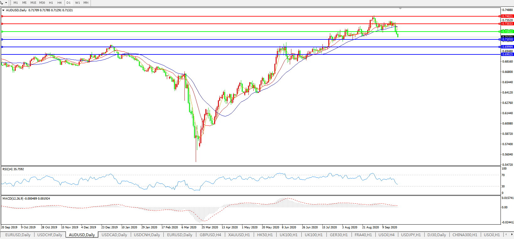 交易策略:0.7200下方看跌,目标0.7100、0.7000