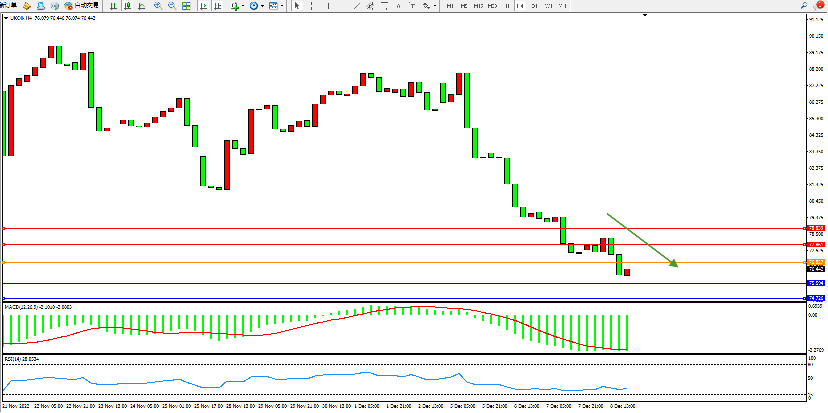 布油维持76.441附近震荡,俄罗斯每天出口的原油桶数下降了近50%。俄罗斯黑海和波罗的海港口的出货量占到了降幅的大部分。