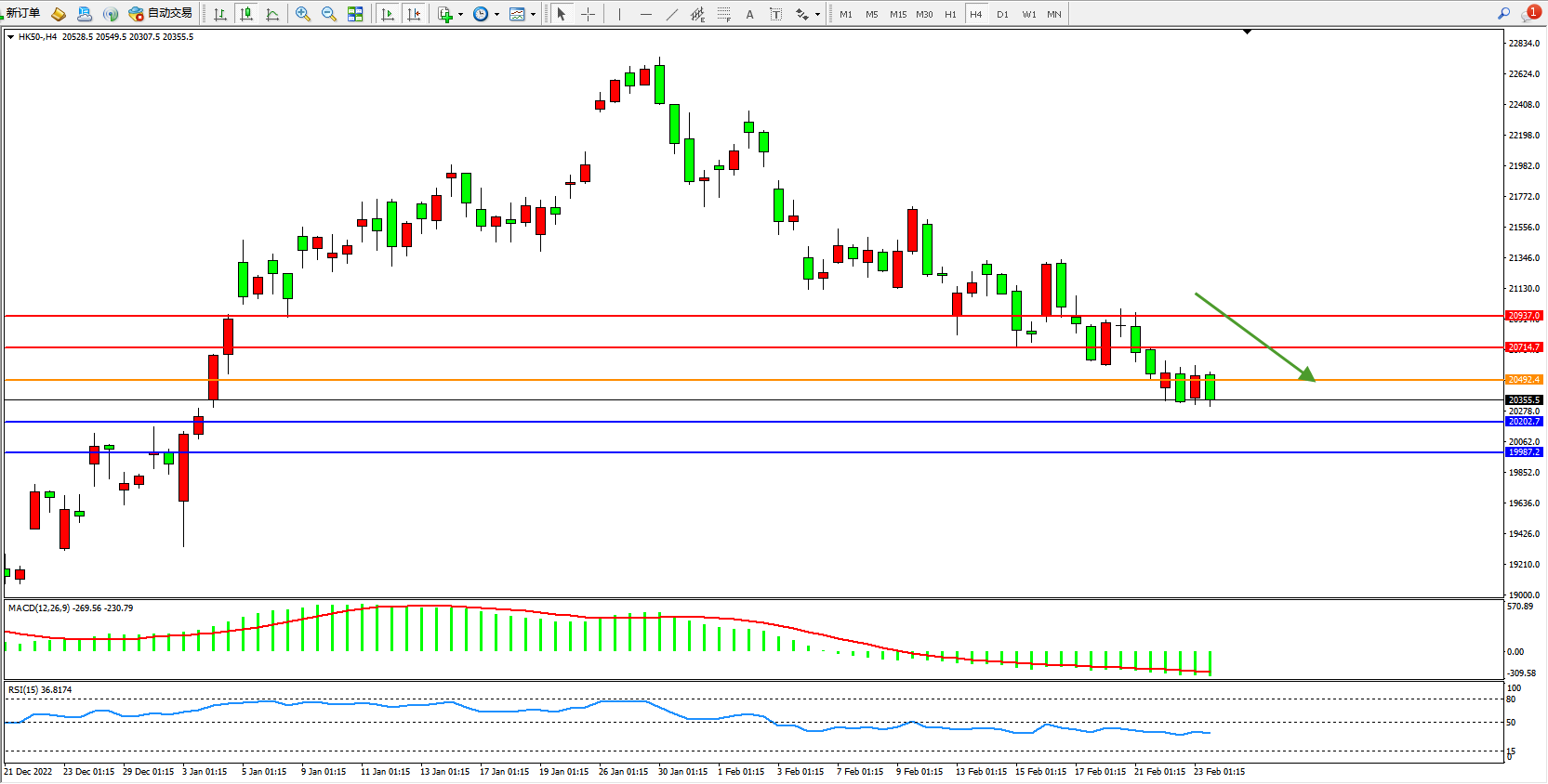 香港恒生指数2月23日(周四)收盘下跌72.49点,跌幅0.35%,报20351.35点;连续回调的港股止跌反弹,三大指数走势分化,恒生科技指数涨1.18%,恒指跌0.35%,盘中曾一度涨约1%。盘面上,大型科技股部分反弹拉升,网易涨超4%,阿里巴巴涨超2%,南下资金净流入25.22亿港元,大市成交额为1026亿港元。花旗发研报预计,中国内地和香港股市还有更多上行空间,有利因素来自全国人大会议、普遍盈测向上修订以及长线投资者的权重增加。