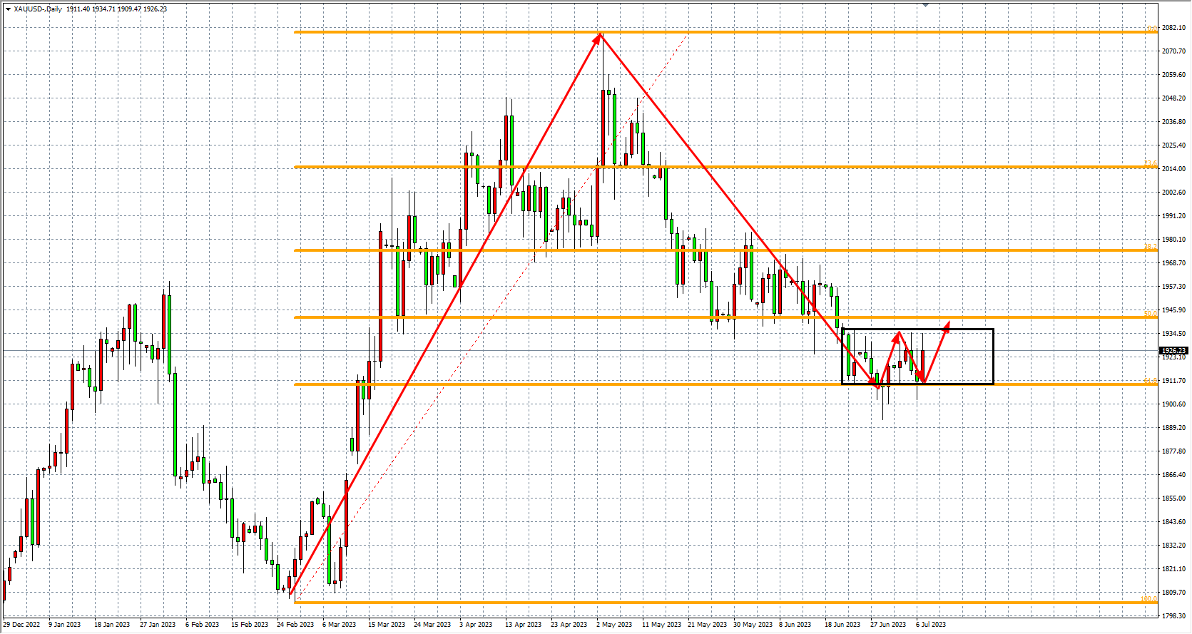 上周(7月3日-7月7日)现货黄金守住1900关口小幅反弹,周线在三连阴后首次收阳。上周黄金近乎持平在1919美元附近,美联储周三发布的6月会议纪要显示,绝大多数决策者预计最终需要进一步收紧政策,金价一度逼近上周创下的3月15日以来新低1892.85美元。随后周五公布的美国6月非农数据不及预期,同时失业率如期走低,美联储很可能在2023年7月结束加息周期,黄金后市下跌空间或有限。